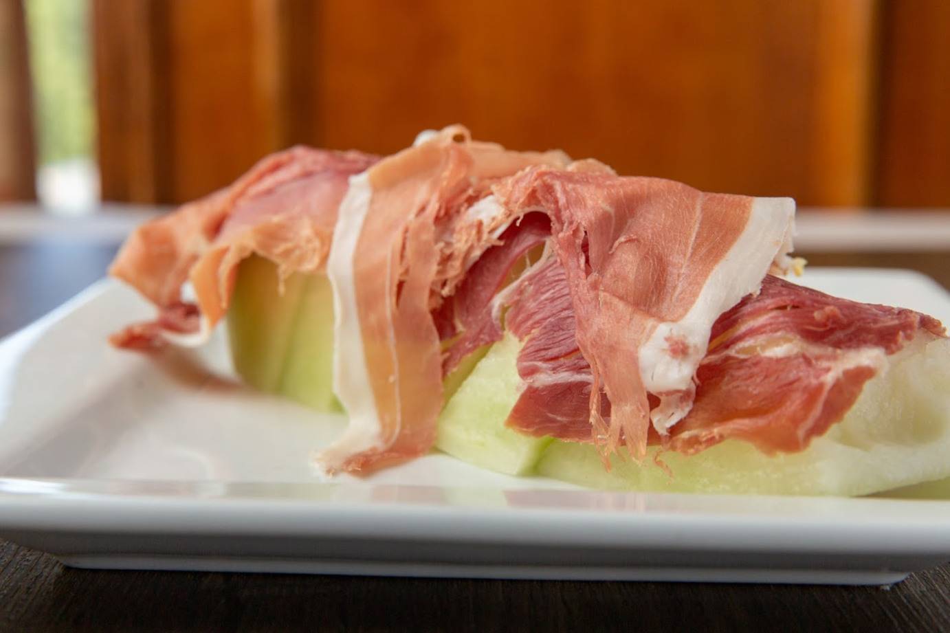 Prosciutto ham, tomato, and fresh mozzarella cheese along with balsamic dressing and olive oil