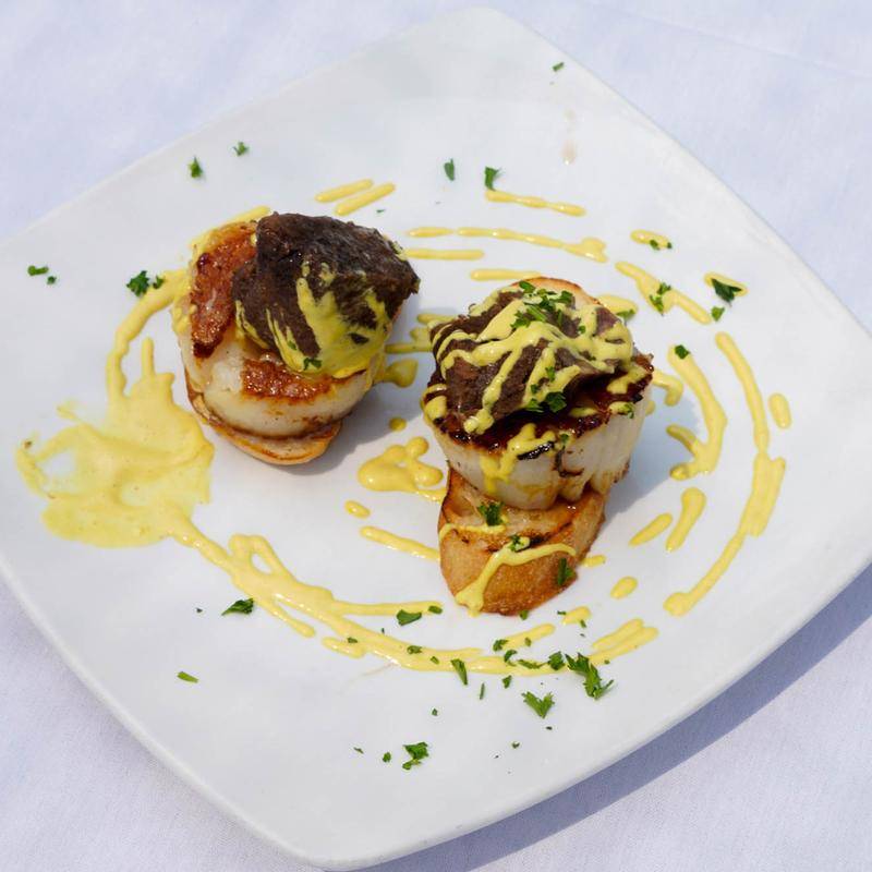 Sea Scallops stuffed with braised beef short ribs