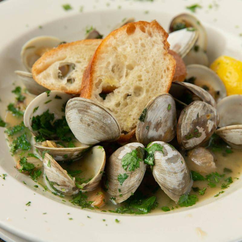 Portuguese style clams with garlic & white wine